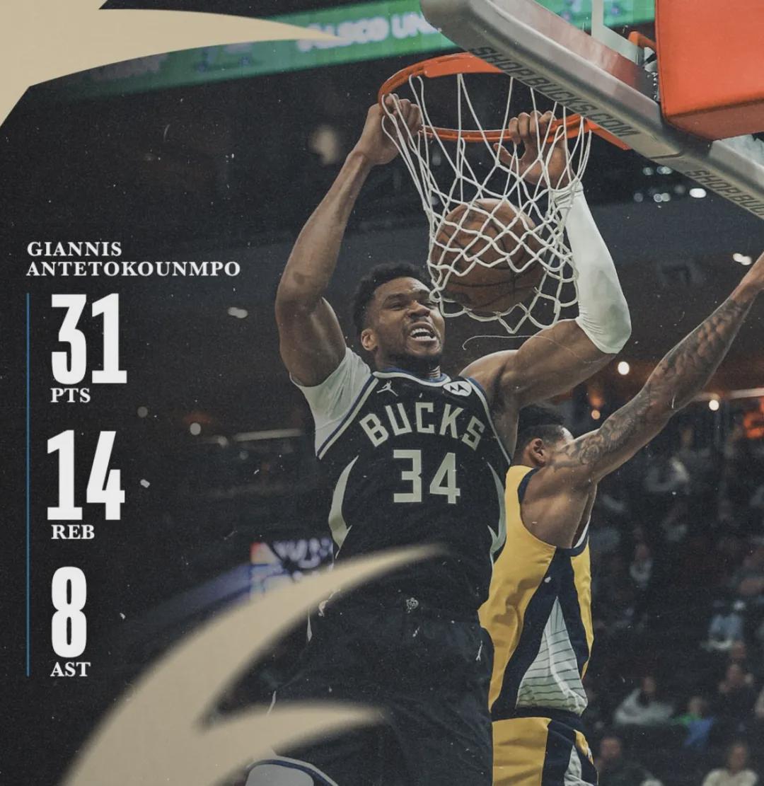 2024年,雄鹿首轮不敌步行者,字母哥季后赛报销;